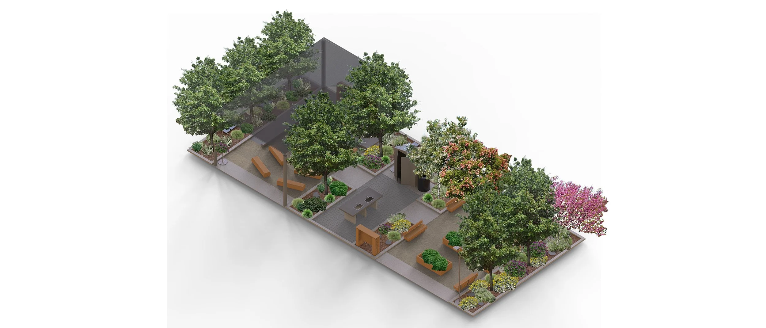 OotDL worked with Berliner Architects and LAUSD Facilities Services Division staff to create flexible templates for outdoor learning spaces across the district serving the needs of instructors and students. Six types of spaces from fairly typical classrooms with tables and benches to native gardens and micro forest are all anchored by a ‘core’ workstation with sinks, counter space and storage, have been designed to DSA standards. Landscape guidelines for the OLEs include details for permeable paving, large canopy shade trees, blackboard signage, wifi and expanded native and adapted plant palettes. All typologies provide significant shade with either fabric canopies, or large shade trees to ensure spaces will be cooler in extreme heat conditions.