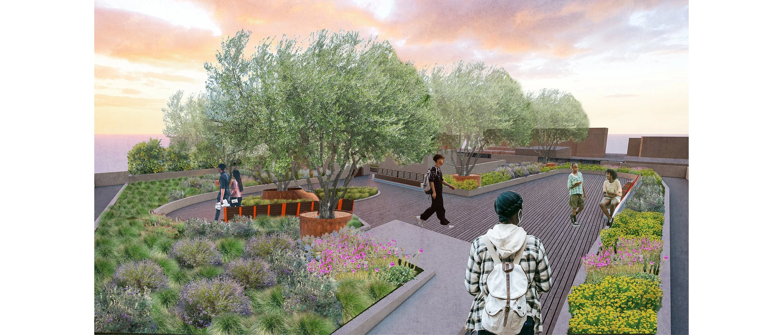 OotDL is providing design services for a mixed use office and retail project on Sunset Boulevard for the Translatina Coalition. The project will provide office and retail space, community gathering spaces and a substantial rooftop garden for the non profit organization. The project streetscape is within the Sunset Boulevard Transit District, providing the required site furnishings and street trees. In a departure from the Mexican fan palms on this famous street the Center will install shade trees to encourage pedestrian activity. The roof garden has been designed as a space for performances and smaller gatherings surrounded by a pollinator garden.